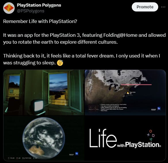 Little did I know, that in 2024, I'd be listening to the gentle sounds of Life With PlayStation, albeit on YouTube now, as I try to help my youngest drift off on a cloud of peace and tranquillity.
